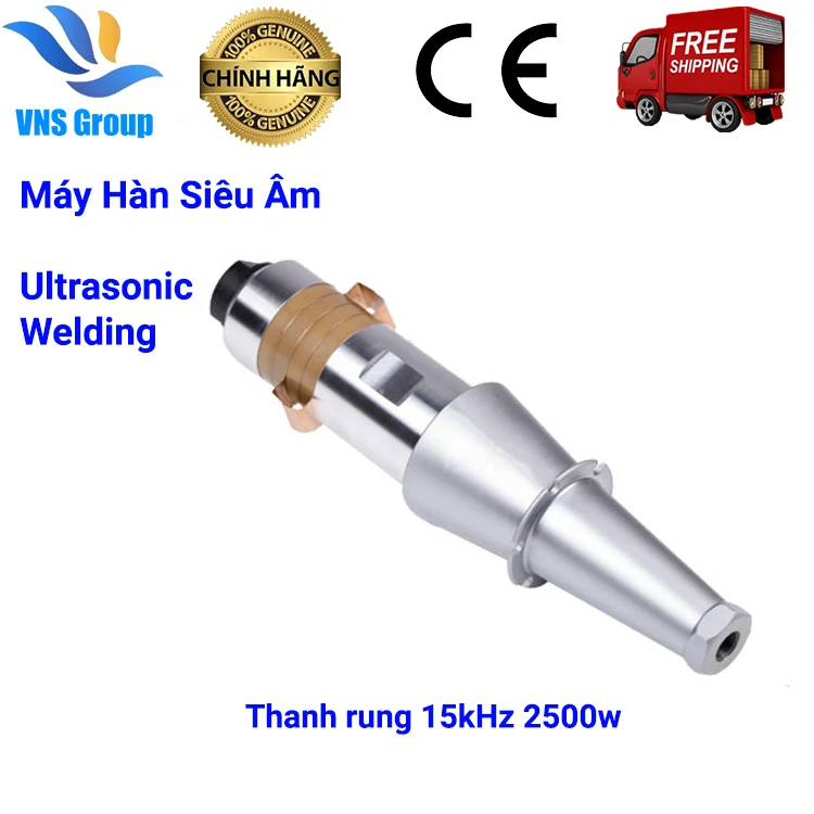Bộ máy hàn siêu âm 15Khz 2500W đầu hàn 110mm x 20mm, 160mm x 25mm, 160mm x 55mm, 210mm x 25mm, 270mm x 25mm, D 160mm, hoặc gia công tùy chỉnh theo kích thước yêu cầu.