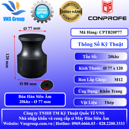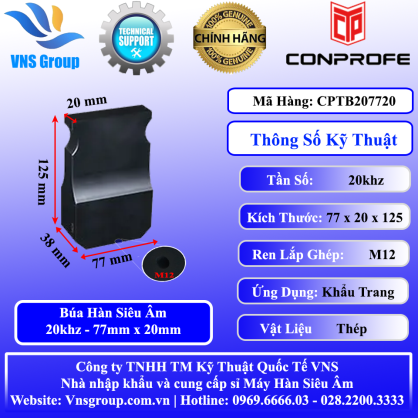 Từ khóa: Máy hàn siêu âm 20kHz 2500W, Máy hàn siêu âm công suất lớn, Máy hàn sóng siêu âm, Máy hàn nhựa siêu âm, Máy hàn siêu âm công nghiệp, Thiết bị hàn siêu âm 20k, Đầu hàn siêu âm, Khuôn hàn siêu âm, Sonotrode siêu âm, Đầu hàn 77mm x 20mm, Đầu hàn tròn D77mm, Đầu hàn 110mm x 20mm, Đầu hàn 160mm x 52mm, Đầu hàn 210mm x 25mm, Đầu hàn 270mm x 25mm, Máy hàn siêu âm tùy chỉnh, Máy hàn siêu âm theo yêu cầu, Bán máy hàn siêu âm, Giá máy hàn siêu âm, Sửa chữa máy hàn siêu âm, Linh kiện máy hàn siêu âm, Ultrasonic welding machine 20kHz, Ultrasonic welder, Máy hàn khẩu trang siêu âm, Công nghệ hàn siêu âm, Máy hàn nhựa công suất cao, Dụng cụ hàn siêu âm, Đầu hàn siêu âm kích thước lớn, Máy hàn siêu âm tần số 20kHz, Phụ kiện máy hàn siêu âm.