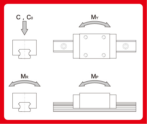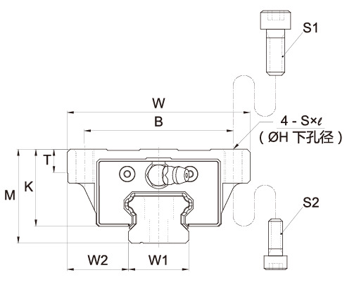 | Amplitude | W2 | Height | Hole spacing | Mounting bolt hole | Dynamic load | Static load | MP(KN*m) | MY(KN*m) | MRKN*m | Slider | Guide rail | ||