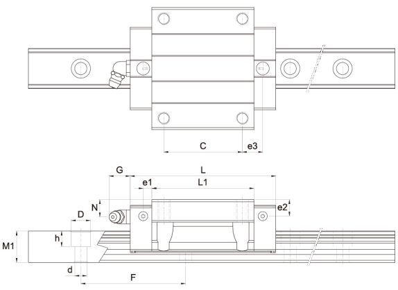 | W1 | M1 | F | D*h*d | C | C0 | A single slider | The two sliders | A single slider | The two sliders | kg | Kg/m | ||