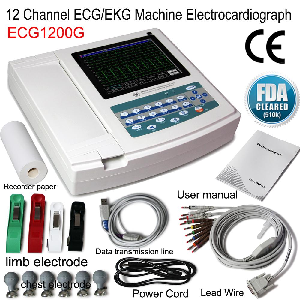 Máy Điện Tim 12 Cần Contec ECG1200G là máy đo điện tim thu thập tín hiệu ECG 12 đạo trình đồng thời và in dạng sóng ECG với hệ thống in nhiệt, có tính năng, ghi và hiển thị dạng sóng ECG với chế độ thủ công hoặc tự động, tự động đo các thông số dạng sóng ECG, nhắc nhở “Tắt” ‘và “Thiếu giấy”, ngôn ngữ giao diện tùy chọn, quản lý cơ sở dữ liệu trường hợp.