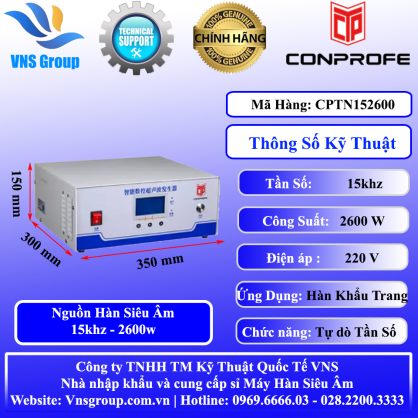 Nguồn Máy Hàn Siêu Âm 15khz 2600w sử dụng hàn vật liệu nhựa mõng và Vải không dệt, phổ biến nhất là được lắp trong máy sản xuất khẩu trang N95, Khẩu trang 3 lớp, khẩu trang 4 lớp…
