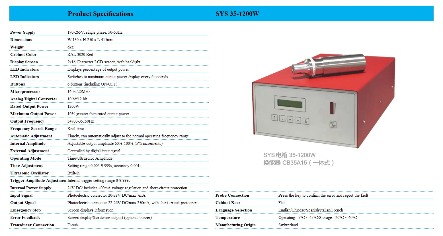 Từ khóa : Bộ điều khiển siêu âm công nghiệp, máy hàn siêu âm 35kHz, bộ điều khiển siêu âm 35kHz, thiết bị siêu âm Thụy Sĩ, điều khiển siêu âm chính xác, SYS 20-35khz.
