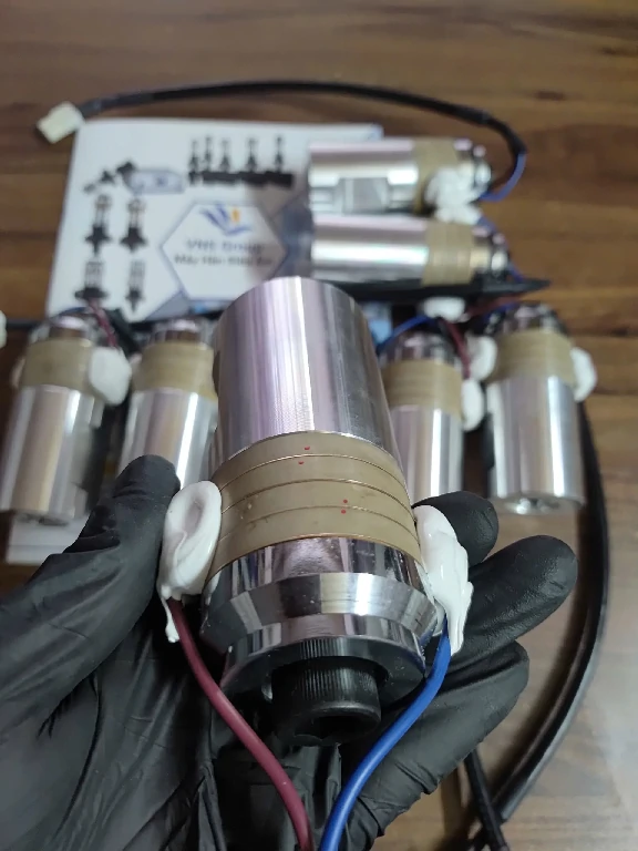 Một cụm sứ siêu âm 20kHz tiêu chuẩn (Transducer ) không đơn thuần chỉ là các miếng gốm áp điện. Nó là một hệ thống cơ – điện được tính toán chính xác để chuyển đổi năng lượng cao tần thành dao động cơ học.